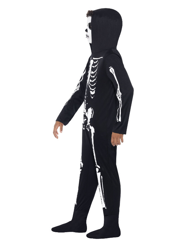 Kostüm Skelett, Schwarz, mit Kapuzenoverall