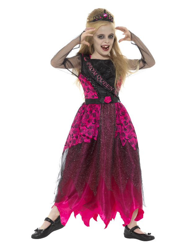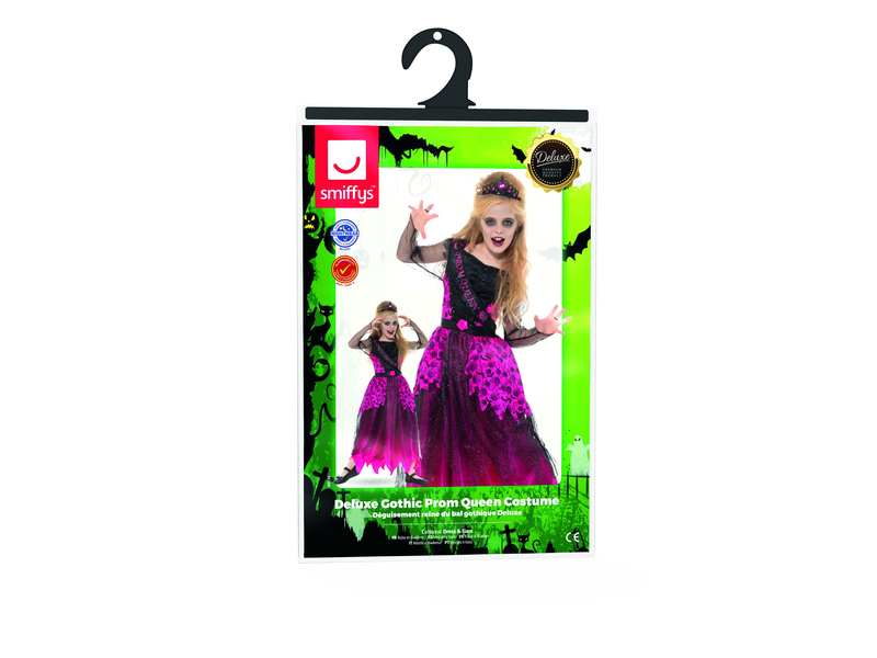 Deluxe Gothic-Ballkönigin-Kostüm, Rosa & Schwarz, mit Kleid & Diadem