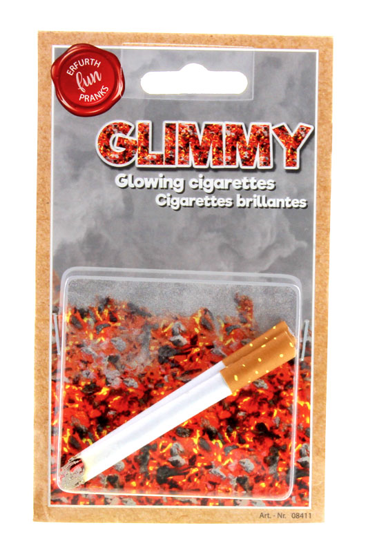 Glimmy, die glühenden Zigarettenattrappe mit täuschend echtem Glüheffekt, bringt eine Extraportion Spaß in jede Situation. Platziere sie strategisch und beobachte die amüsierten Reaktionen. Der ideale Party-Gag für unbeschwerte Momente.