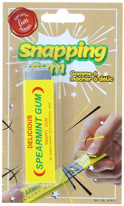 Sei auf der Hut – der Snappy Gum ist eine Fingerfalle, die für Überraschungen sorgt. Biete deinen Freund*innen einen scheinbar harmlosen Kaugummi an, und schon ist der Finger in der Falle. Dieser Streich-Kaugummi ist ein garantierter Spaßmacher und bringt unerwartete Momente voller Gelächter.